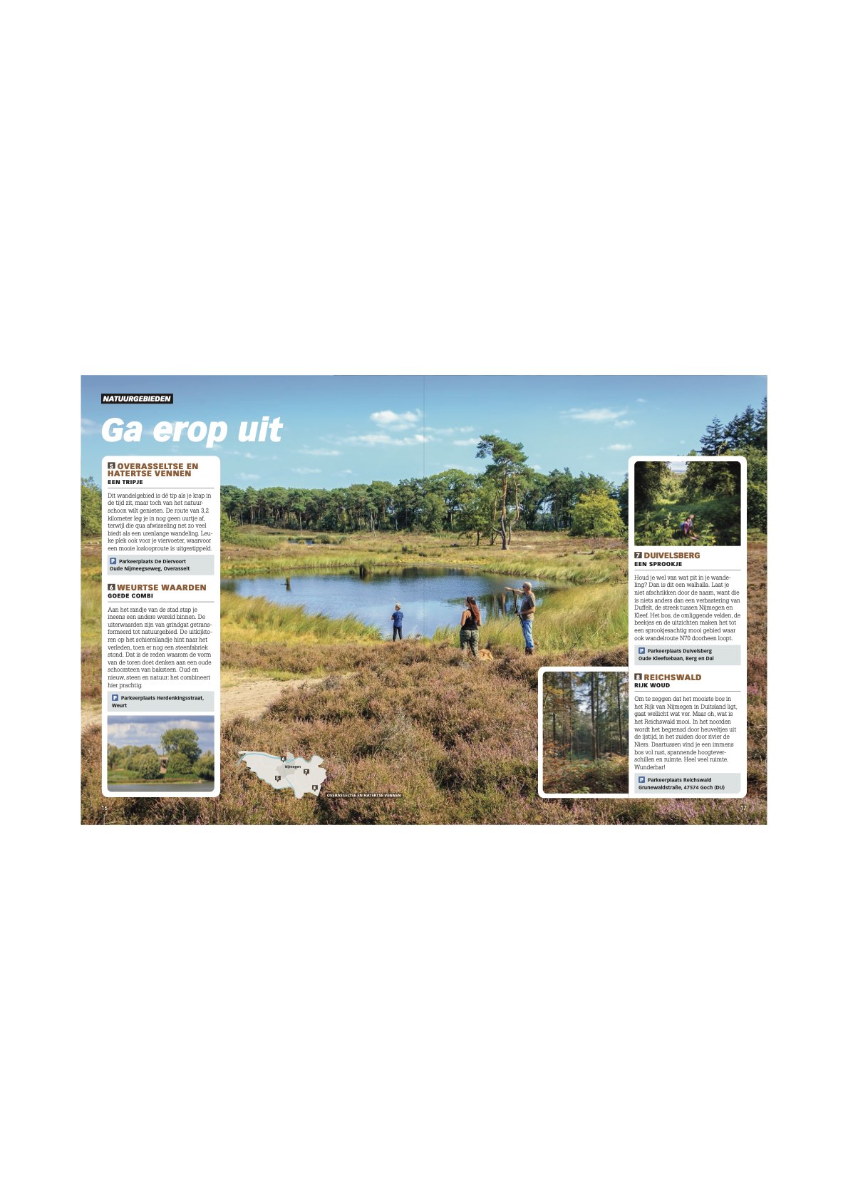 In dit magazine nemen we je mee door het Rijk van Nijmegen: een regio waar natuur, cultuur en historie elkaar versterken. We ver- rijken je met een reis door de tijd, langs Romeinse sporen, kastelen en herinneringen aan de Twee- de Wereldoorlog. Daarna komen we in beweging in de prachtige natuur waar het Rijk van Nijme- gen rijk aan is: bossen, heuvels, uiterwaarden, heide, rivieren en vennen. Natuurlijk vergeten we daarbij tips voor fiets- en wan- delroutes niet, want dat is de beste manier om al dat moois zelf te gaan ontdekken. Ook aan de stadsmens hebben we gedacht. Zo vind je in dit magazine volop tips om cultuur te snuiven en lekker te eten in de stad. En als je toe bent aan ontspanning, hebben we daar ook nog fijne tips voor. En daar eindigt de reis niet. Laat je inspireren en ontdek wat het Rijk van Nijmegen voor je in petto heeft.