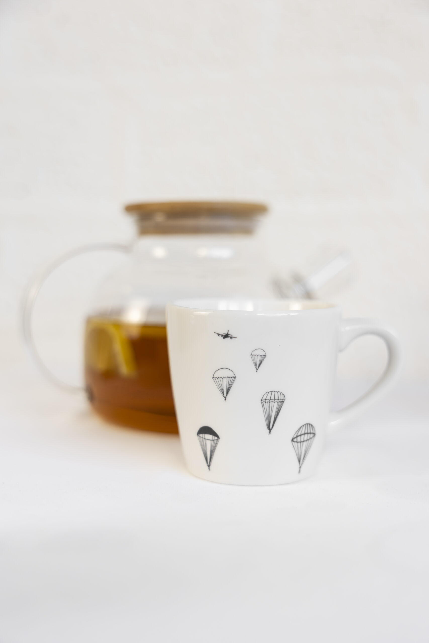 De door Bonnie handgetekende illustratie staat symbool voor de Slag om Arnhem in WO II. Een met liefde, plezier en aandacht uitgewerkt ontwerp met op elk mokje een subtiel gouddetail.