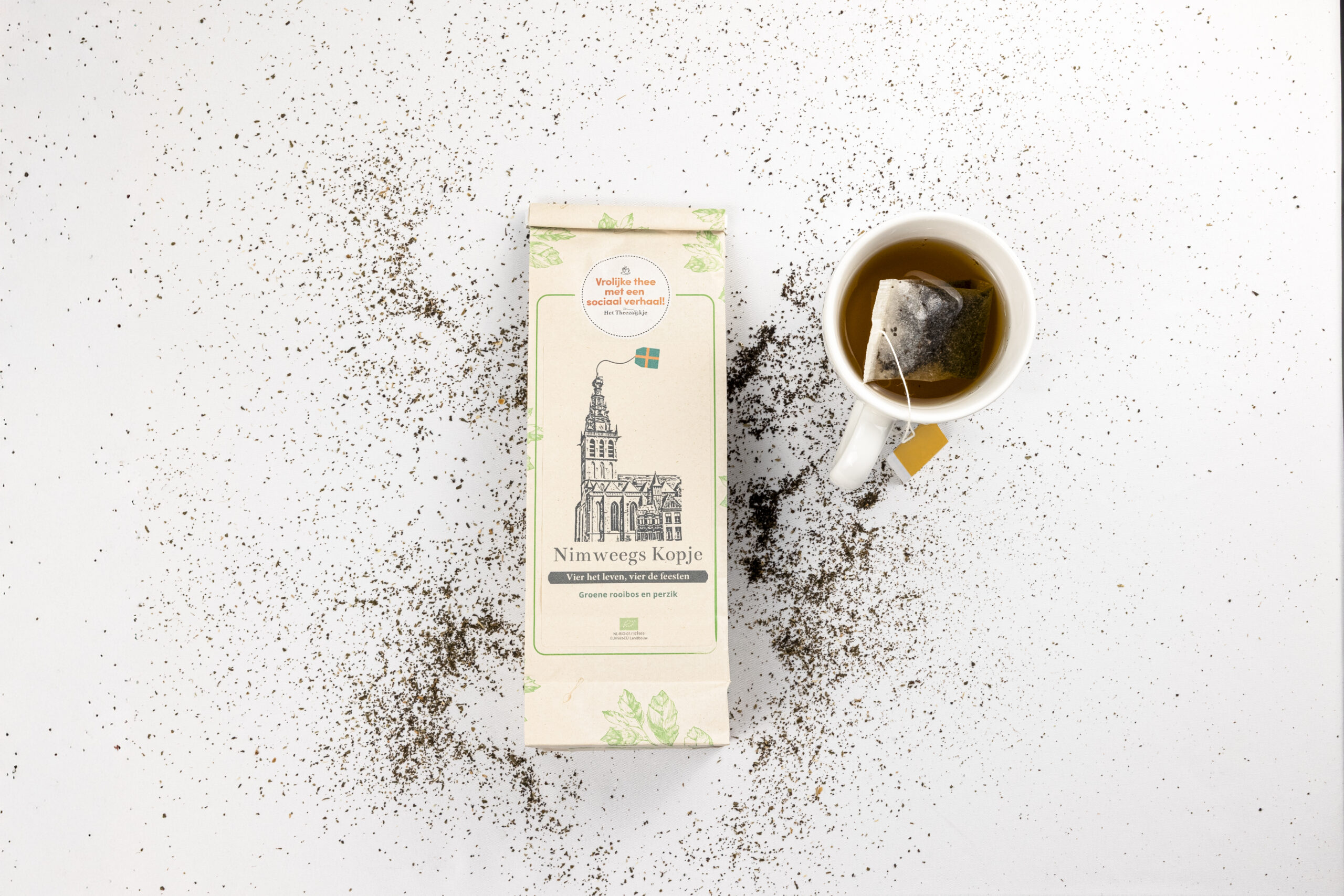 Deze thee is 100% biologisch en met respect voor de natuur geteeld. Een feestelijke melange van groene rooibos, perzik, sinaasappel en goudsbloemblaadjes. Gemaakt door mensen die op weg zijn naar een passende baan of opleiding.